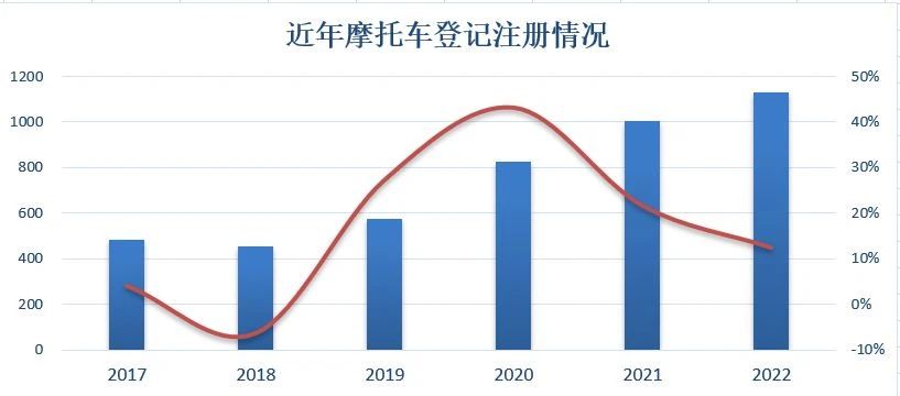 2022年全国新登记注册摩托车1130万辆,增长12%