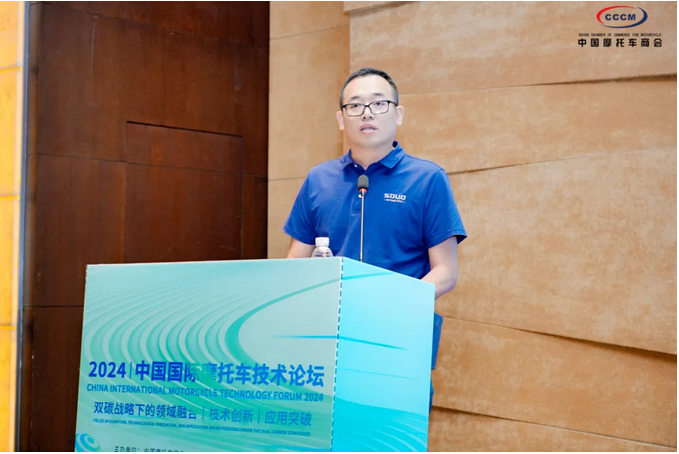 9月24日,中国国际摩托车技术论坛在成都召开。中国摩托车商会常务副会长李彬、机动车排污监控中心资深专家季欧、国家摩托车质量检验检测中心(天津)主任张立鹏、中国汽车工程学会摩托车分会主任刘欣、中检西部检测有限公司研究员段保民、中国摩托车商会专家委员会主任施继民、北京航空航天大学杜孝平教授等领导、嘉宾出席了会议,来自全行业上下游产业链100余家企业参加了会议。